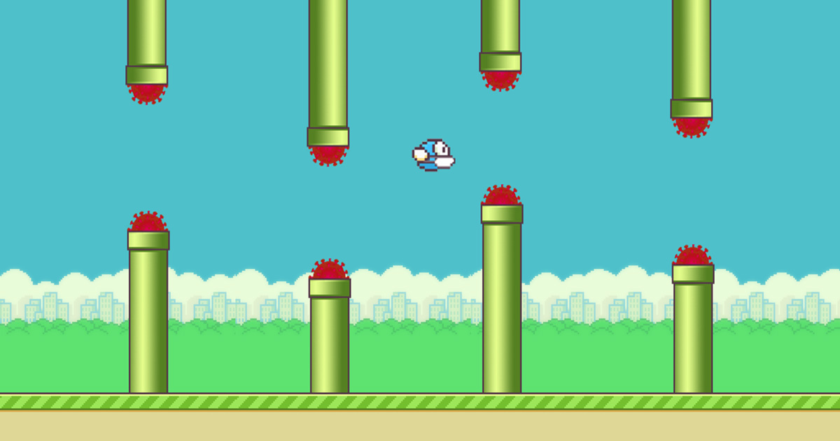 Help flapping bird flying in the sky safely and avoid terrible viruses. How far can you fly?